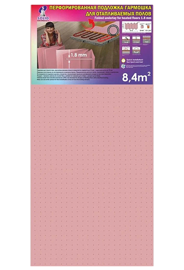 Подложка SOLID Termo розовая 1,8мм перфорированная гармошка 8,4 м2